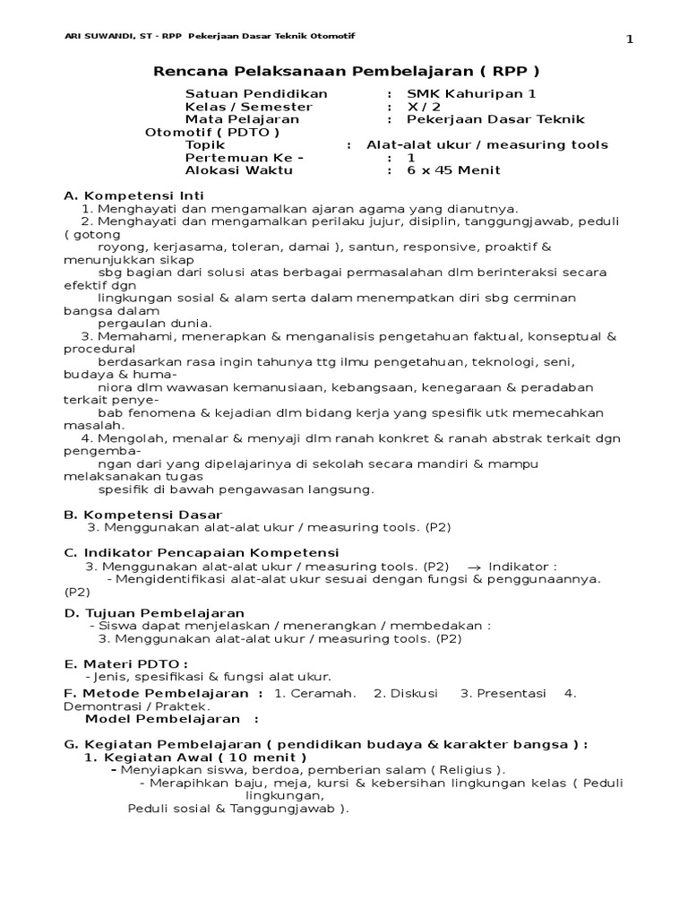 Rpp pdto 2 pekerjaan dasar teknik otomotif 2013. Walaupun sudah lama tidak posting di bmr saya akan berusaha aktif di bmr untuk berbagi tentang banyak hal kepada sahabat bmr sekalian. 4 gunakan alat sesuai prosedur pemakaian yang benar.