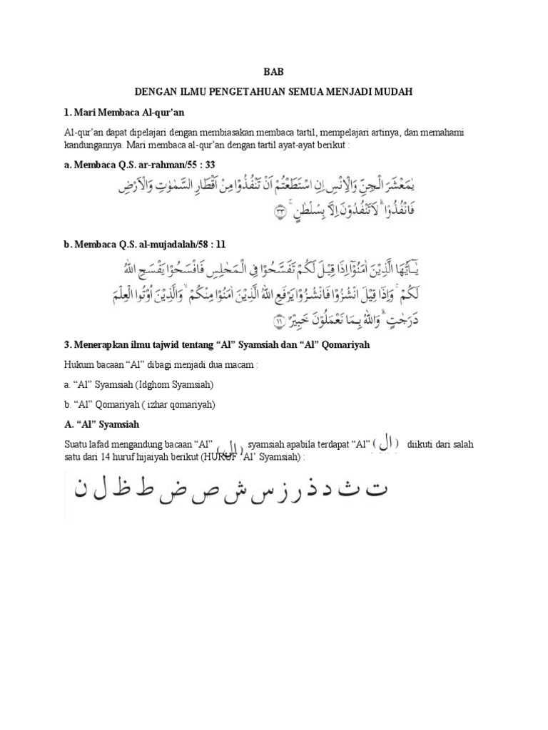 Carilah Hukum Bacaan Alim Lam Syamsiah Dan Qamariyah Pada Surah Ar Rahman Ayat 33 Brainly Co Id