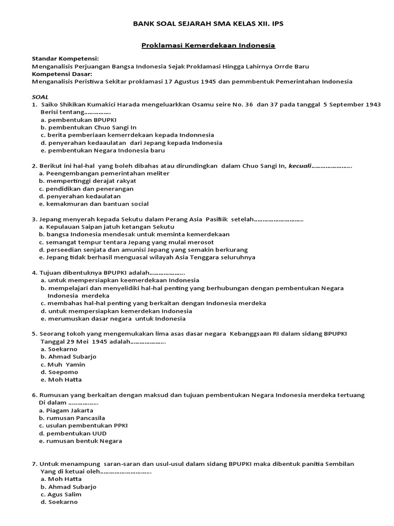 Bank Soal Sejarah Sma Kelas Xii
