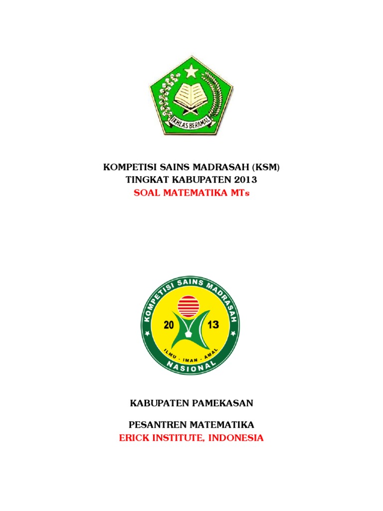 Contoh Soal Ksm Mts Matematika Tingkat Kabupaten Tahun 2020
